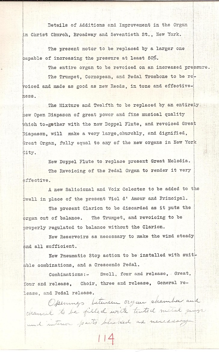 Notes: The contract was for the rebuilding of the 1865 3/40 Erben that had been located at the previous church.