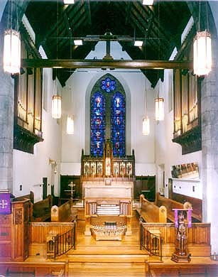 Photo #2 Source: Jonathan Bowen. Notes: The organ was rebuilt in 1959 by Hillgreen, Lane & Co., with changes by Robert Wervy in 1972; it was rebuilt again and enlarged, with a new console, by the Kegg Organ Co. in 1998. Retained Skinner ranks are the Swell flutes, strings, Flügel Horn, Vox Humana, Choir Concert Flute and Kleine Erzähler, the Solo reeds and the Pedal Diapason (bottom 12 notes) and Bourdon. The Great Diapasons were converted into stopped metal flutes. Organ Historical Society Database: https://pipeorgandatabase.org/OrganDetails.php?OrganID=9378 |
