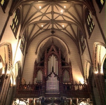After much study and deliberation, the Committee on the Fabric of the Church and its Chapels made its recommendation to the Vestry. In November 1968, a contract was signed with the Aeolian-Skinner Organ Company to replace all mechanisms and structures which were not new in 1961, and to reposition all divisions for maximum sound projection. New ranks of pipes were added to fill out the tonal scheme, leather components were replaced with a newly developed synthetic [Perflex, soon replaced at great expense by Aeolian-Skinner], and a duplicate console for the gallery was built to allow maximum flexibility. All portions of the instrument that were new in 1961 were retained, as were many fine ranks of the Skinner Organ and the Erben Pedal principal. These old Erben pipes were removed from the main case and placed against the chamber wall to allow better sound projection.