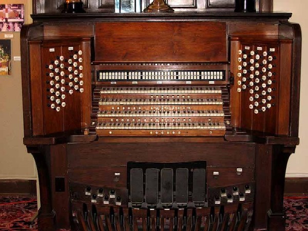 Photos 1-4 Source: Jeff Scofield Photos 5-6 Source: William Van Pelt Notes: "Pipes will be housed in a special 18 x 32 foot compartment above the ceiling of the auditorium, the sound being transmitted through a grill. An exception will be the Echo organ, which will have a place of its own in the rear. The console will be the only visible part of the organ and will be at the left side of the auditorium main floor facing the stage." (from The Diapason, April 1928) The console was relocated as Op. 696-A Organ Historical Society Database: https://pipeorgandatabase.org/OrganDetails.php?OrganID=23436 |