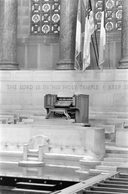 Photo 2 Source: The Diapason, via Jonathan Bowen Photo 3 Source: The Composition of the Organ, by Ernest M. Skinner and Richmond H. Skinner, published by Melvin J. Light Photos 4-14 Source: Courtesy Bruce Shultz and Doug Backman Notes: The organ chamber in the Girard College Chapel is certainly unique. Located in the ceiling at a height of 100' above the floor, the chamber is 60' feet long, 40' feet wide at one end and 22' at the other end, with a height inside the chamber of 40'. Because of the hard surfaces of the chamber and the room below, as well as the open grill permitting the sound to travel unhindered to the 2500-seat room below, the sound of the organ is tremendous. It is one of the most exciting organs in the country. Austin built a new console in 1986. There have been a number of tonal changes in the last few decades. Organ Historical Society Database: https://pipeorgandatabase.org/OrganDetails.php?OrganID=9032 |