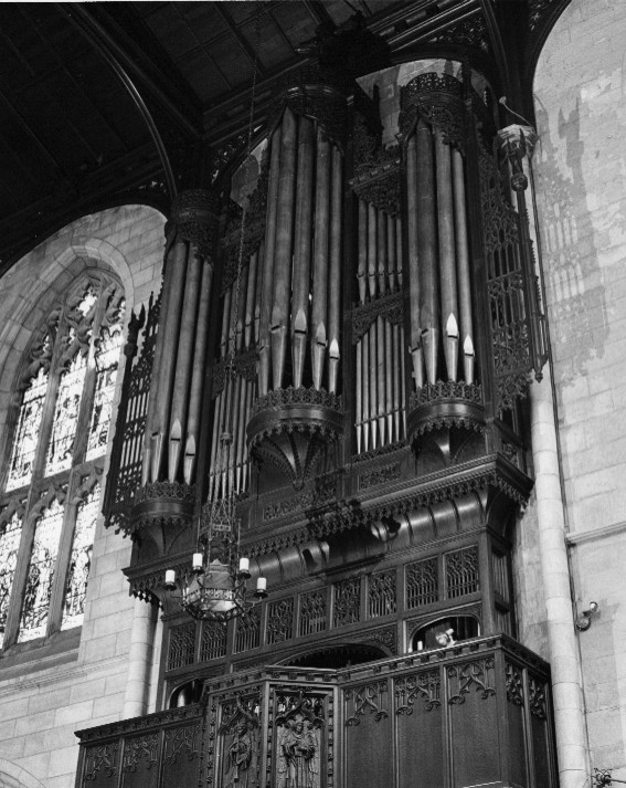 Builder: Aeolian-Skinner Organ Co., Inc. Year: 1935-1962 Opus: 936 No. manuals: 3 No. stops: 81 No. ranks: 92 No. pipes: 5,336 There were many alterations and additions by the company from 1945 to 1962, including relocating the console, tonal additions, alterations and revoicing. The Processional organ was relocated to the console's former niche. Here is an overview of the company's work thru 1962: GREAT ORGAN