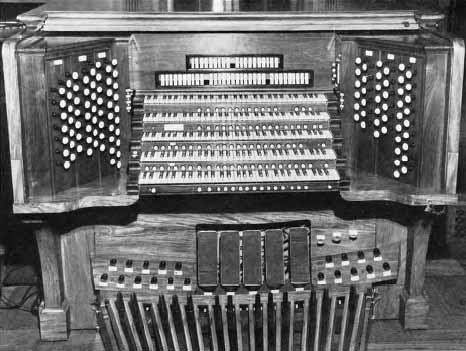 Builder: Aeolian-Skinner Organ Co., Inc. Year: 1937 Opus: 958 No. manuals: 5 No. stops: 12 No. ranks: 16 No. pipes: 959 SpecificationThis contract was for a new 5-manual console, the addition of a Positiv division and the addition of a Pedal 32' Fagotto unit.