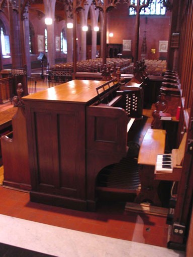 Notes: Christ Church was founded in 1854 as a mission of the city's first Episcopal parish, Trinity. The present Gothic Revival building, designed by Henry Vaughan, was consecrated in 1898. The tower, a close adaption of the tower at Magdalen College, Oxford (1492-1507), was the prototype for countless churches and college chapels. The parish became a national leader in the Anglo-Catholic movement, hosting the American Catholic Congress of the Episcopal Church in 1925. The first organ in the present building was Hutchings Op. 384, a three-manual 45-rank tubular-pneumatic instrument installed in 1896. It was electrified by the Hall Organ Co. in the 1920s and Aeolian-Skinner installed a new console as Op. 1066 in 1945. The firm then carried out extensive tonal changes in 1954 as Op. 1066-A, using much of the Hutchings pipework with considerable alterations. The A. Thompson-Allen Organ Co. has since overhauled the instrument with slight alterations. One stop, the Clarinet, was replaced with a set of pipes from Aeolian-Skinner Op. 851, 1931, formerly at Trinity College in Hartford. The organ, offered for sale in 2004 thru the Organ Clearing House, was replaced by a 3/63 Lively-Fulcher in 2005. Organ Historical Society Database: https://pipeorgandatabase.org/OrganDetails.php?OrganID=33932 |