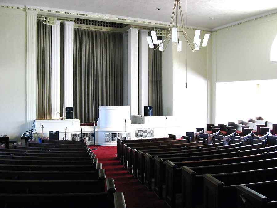 Photo Source: Chad Boorsma Notes: The organ was still extant and maintained in good condition in July 2010; the auditorium is located on the top floor of the building; however, the congregation has dwindled in numbers and has leased the building to another congregation. Organ Historical Society Database: https://pipeorgandatabase.org/OrganDetails.php?OrganID=33949 |
