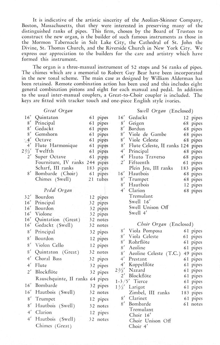 Builder: Aeolian-Skinner Organ Co., Inc.