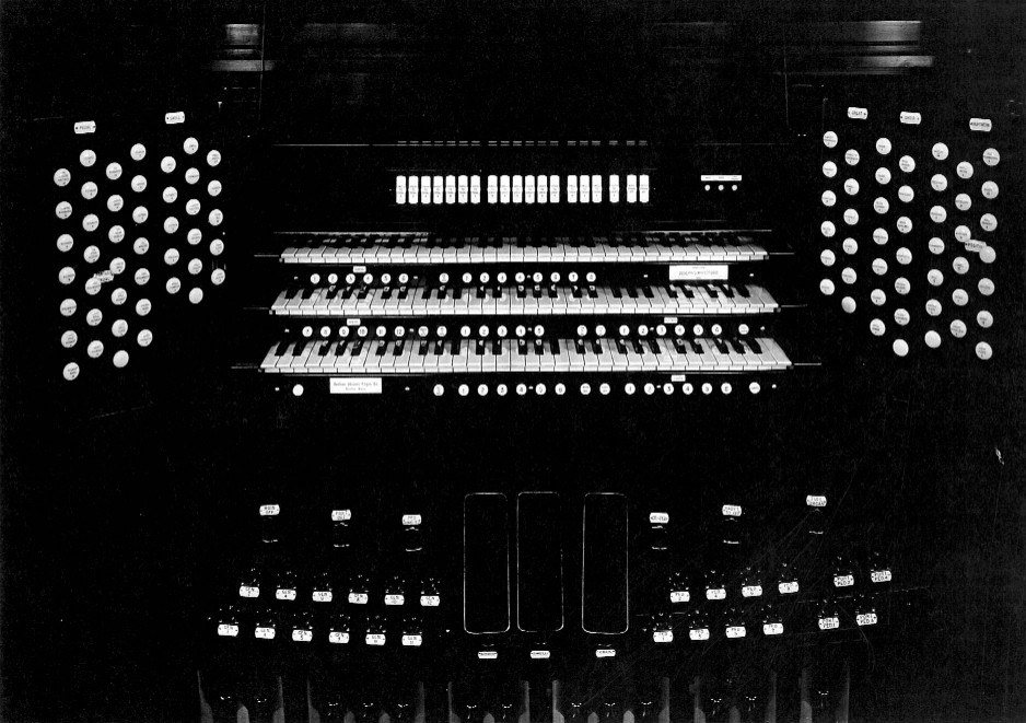 Builder: Aeolian-Skinner Organ Co., Inc. Contract Year: 1955 Install Year: 1956 Dedicated: October 6, 1957 (Marcel Dupré, organist) Opus: 1324 SpecificationGREAT ORGAN (II) HAUPTWERK (II, portable) 8' Principal 61 16' Quintade 56 8' Bourdon 61 8' Prinzipal 56 4' Octave 61 8' Holzgedackt 56 2 2/3' Twelfth 61 8' Spitzflöte 56 2' Fifteenth 61 4' Praestant 56 IV Fourniture 244 2 2/3' Quinte 56 III Cymbel 183 2' Super Oktav 56 16' Bombarde 61 IV Mixtur 224 8' Trompette Harmonique 61 8' Krummhorn PO 4' Clairon Harmonique 61 POSITIV (I, portable) SWELL ORGAN (III) 8' Rohrflöte 56 16' Rohrgedackt 68 8' Spitzflöte HW 8' Viola Pomposa 68 4' Koppelflöte 56 8' Viola Celeste 68 2 2/3' Nasat 56 8' Rohrgedackt 12 2' Oktav 56 4' Prestant 68 1 3/5' Terz 56 4' Flauto Traverso 68 1' Sifflöte 56 2' Octavin 61 III Zimbel 168 IV Plein Jeu 244 8' Krummhorn 56 16' Contre Hautbois 68 8' Trompette 68 PEDAL (portable) 4' Clairon 68 16' Gedacktbass 12 HW Tremulant 16' Quintade HW 8' Spitzprinzipal 32 CHOIR ORGAN (I) 8' Holzgedackt HW 8' Spitzviol 68 4' Choralbass 12 8' Flûte à Chéminee 68 4' Holzgedackt HW 8' Dolcan 68 2' Holzgedackt HW 8' Dolcan Celeste 68 16' Krummhorn 12 PO 4' Nachthorn 68 8' Krummhorn PO 2' Blockflöte 61 4' Krummhorn PO II Sesquialtera 122 8' Rohrschalmei 68 4' Petite Clairon 68 Tremulant PEDAL ORGAN 16' Contre Basse 32 16' Montre GT 16' Bourdon 32 16' Rohrgedackt SW 8' Octave 32 8' Bourdon 12 8' Rohrgedackt SW 4' Choralbass 12 4' Bourdon 12 V Mixtur 160 32' Contre Bombarde 12 GT 16' Posaune 32 16' Bombarde GT 16' Contre Hautbois SW 8' Trumpet 12 4' Clairon 12