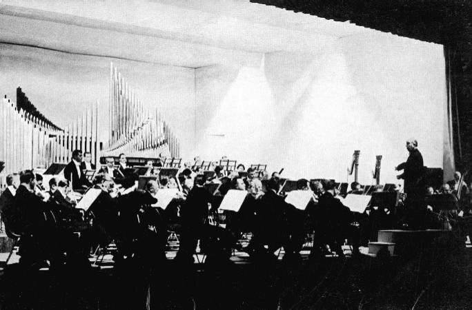 Photo 3 Source: Private collection of Jim Lewis (Photo is of Paul Paray and Marcel Dupré) Notes: The Hauptwerk and Positiv were on a movable platform. Four taxi horns were added in 1958 (Op. 1324-A). In 1989, the Detroit Symphony Orchestra (DSO) left Ford Auditorium and moved to its former home, the restored Orchestra Hall. Ford Auditorium struggled to stay open as a multiuse auditorium and performance venue but was basically shuttered and sat unused for 16 years. After various plans to redevelop the site were unrealized, it was decided to raze the auditorium. The Portative Organ (Hauptwerk, Positiv, Pedal) was moved to Orchestra Hall for use by the DSO. The Detroit AGO attempted to rescue the main organ, located above the stage, but the organ was ultimately donated to St. Aloysius R.C. Church in Detroit. A team of volunteers, led by Rick Helderop, president of Helderop Pipe Organs, and Aaron Kaleniecki, music director of St. Aloysius, removed the remainder of the organ and the console just prior to the auditorium's demolition in July 2011. Plans are to rebuild the organ for installation in St. Aloysius Church. Organ Historical Society Database: https://pipeorgandatabase.org/OrganDetails.php?OrganID=27237 |