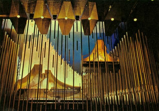 lowest 5 pipes of the wooden 32' Kontra Geigen were mitred. Photo #2 Source: Fred Swann Organ Historical Society Database: https://pipeorgandatabase.org/OrganDetails.php?OrganID=35680 |