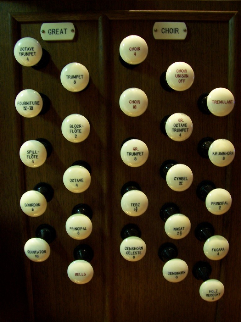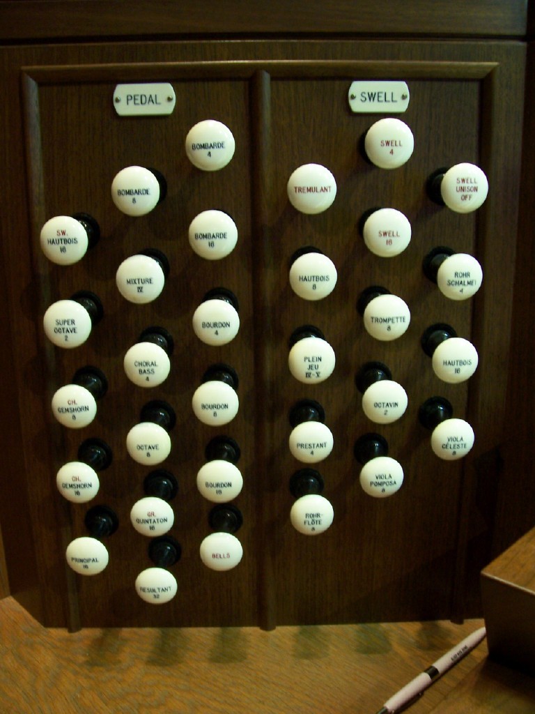 4' Octave Trumpet GT 2' Super Octave 12 IV Mixture 128 16' Bombarde 32 16' Hautbois SW 8' Bombarde 12 4' Bombarde 12 Chimes pf