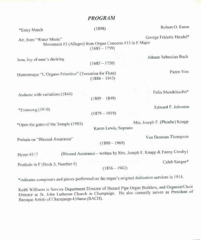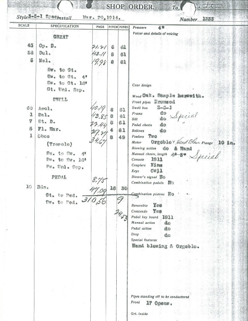 Swell8 Stopped Diapason8 Salicional8 Aeoline4 Flute Harmonic8 Oboe (TC) Tremolo Sw to Gt 16-4 Sw Unison Off