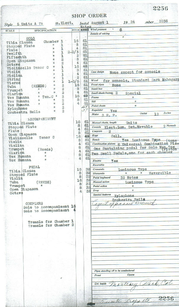 Flute 8 Violin 8 Trumpet 8 Vox Humana 4 Flute 4