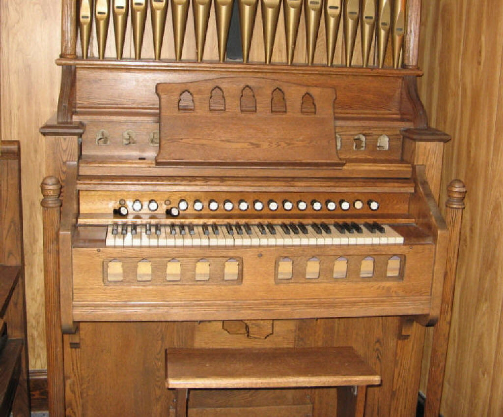 16 Bourdon 8 Diapason 8 Dulciana 4 Flute 8 Vox Jubilante 8 Choral Tremolo Forte II Treble Coupler |
