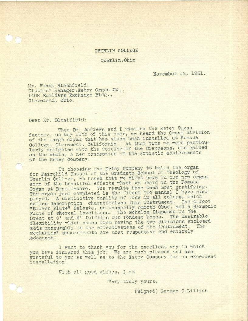 College and the Estey company record that
