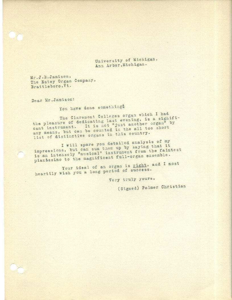 organist, and James B. Jamison of the Estey company drew